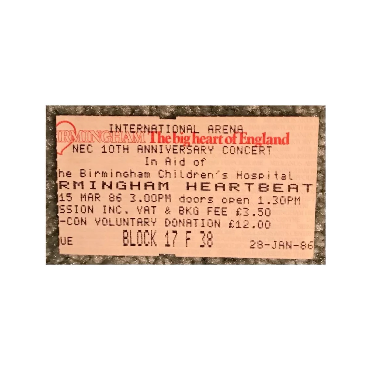 03/15/86 Concert Ticket