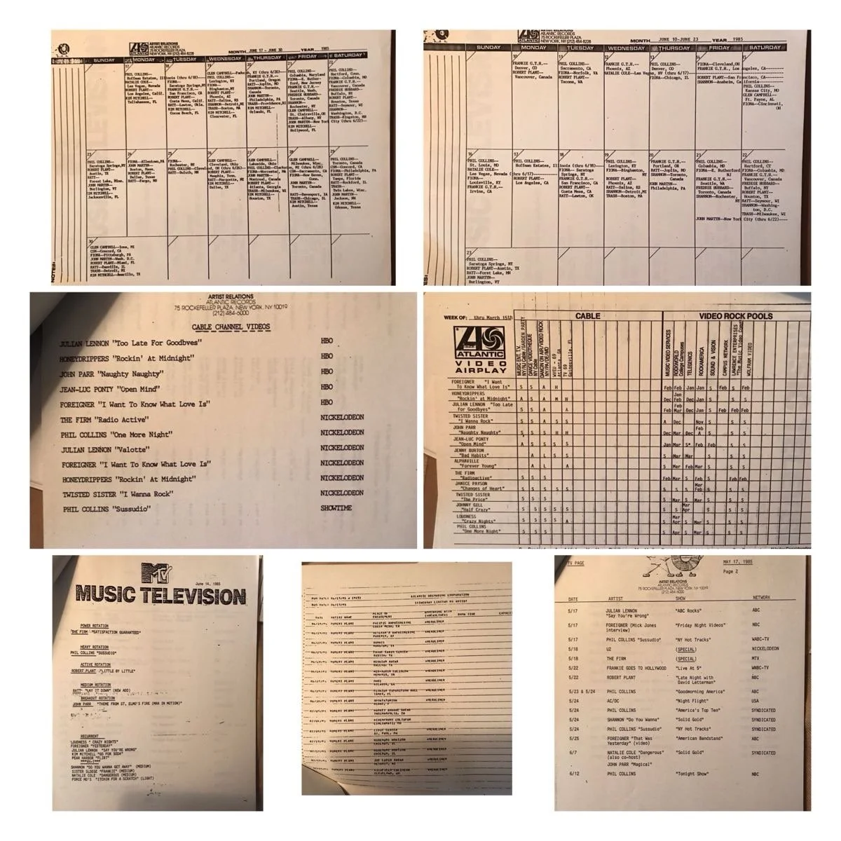 1985 Atlantic Records Roster itinerary Plant RATT CSNY Foreigner Phil