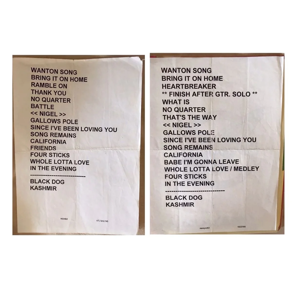 Set lists - 07/26/95 & 10/27/95