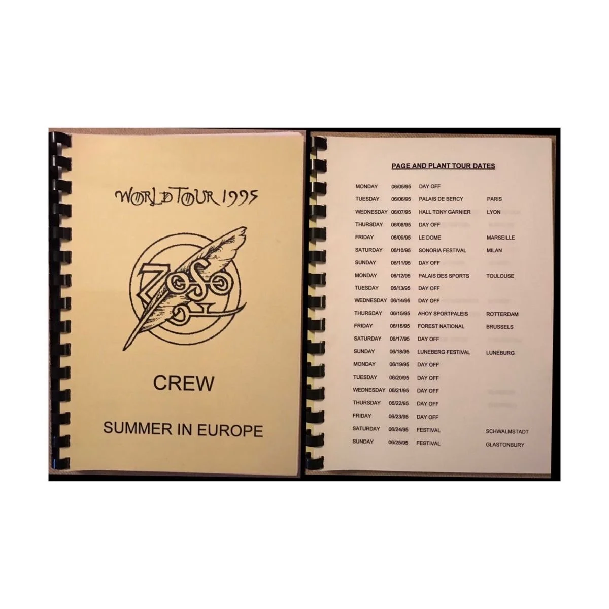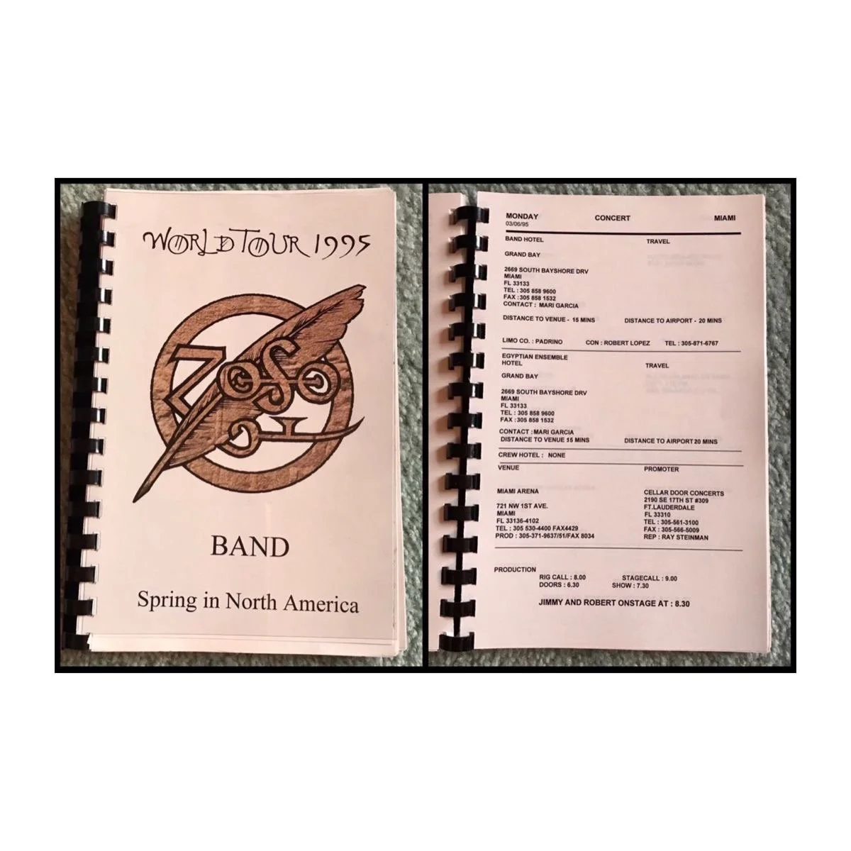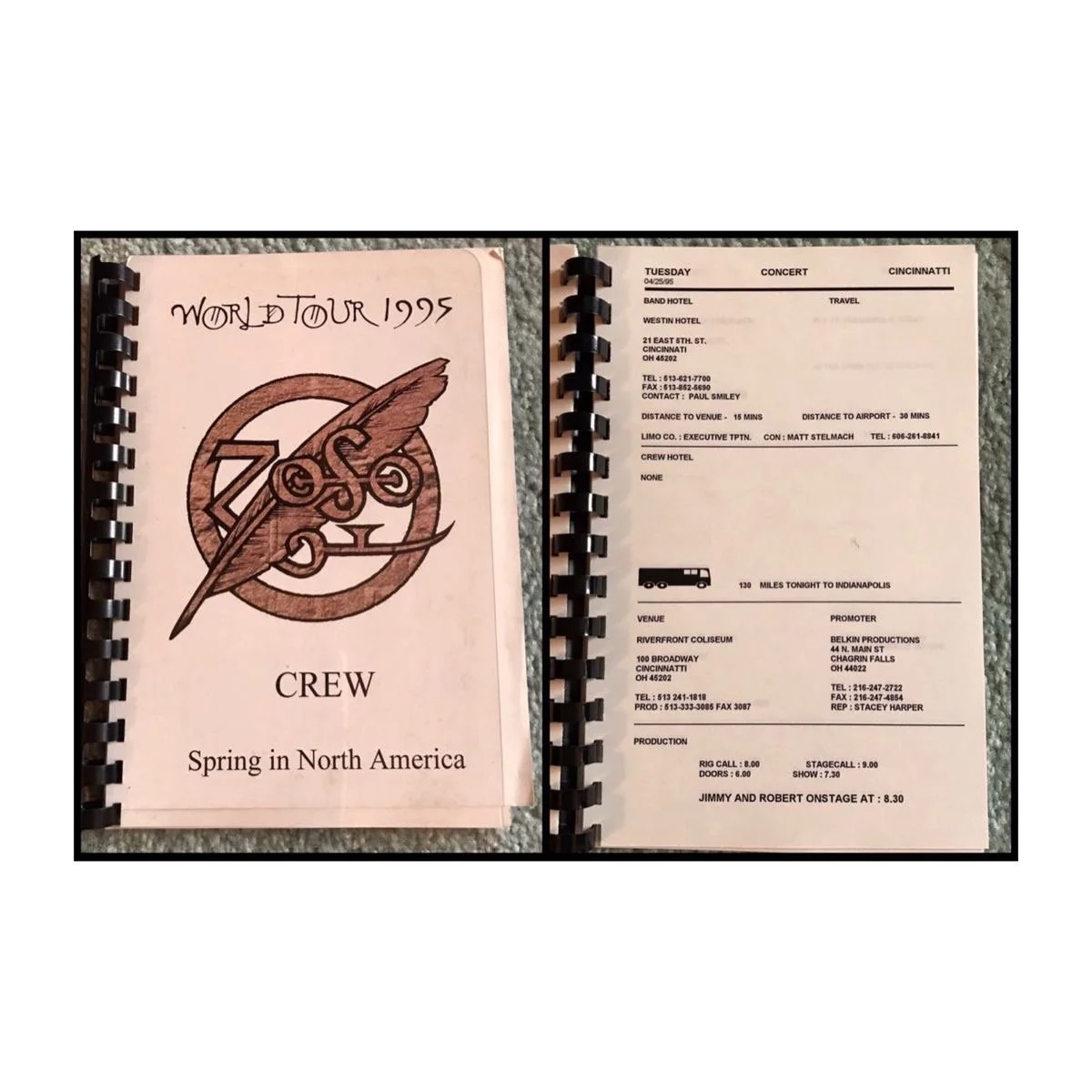 1995 Europe Tour Contact Info Sheets